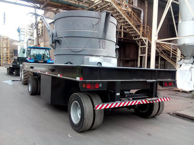 Fabricamos carretas industriais de alta capacidade para o transporte de panelas de gusa líquido ou escória, com estrutura reforçada, berço estabilizador e caixa de contenção. Tudo projetado para oferecer 100% de segurança nas operações, mesmo em ambientes extremos e com cargas quentes ou instáveis.